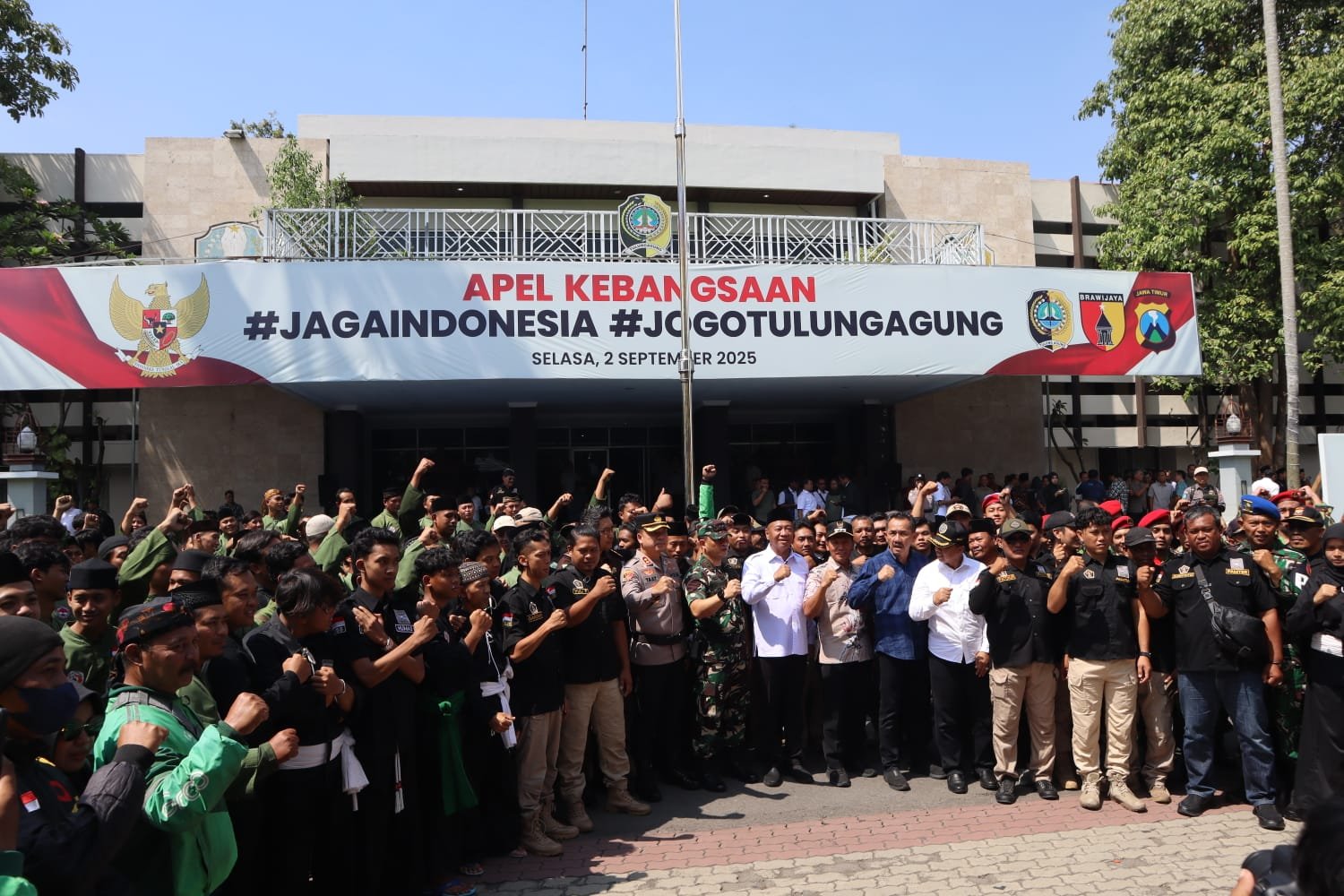 Apel Kebangsaan ini mengusung tema “Jaga Indonesia, Jogo Tulungagung”, yang berlangsung di halaman Pemkab Tulungagung, pada Selasa, (02/09/2025) sebagai simbol komitmen menjaga kondusifitas wilayah, mempererat persaudaraan, serta menolak segala bentuk provokasi dan perpecahan.